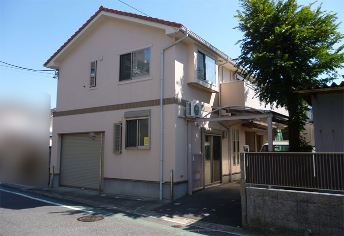 裏門から見える家が「離れ」、その奥にあるのが「母屋」になります。